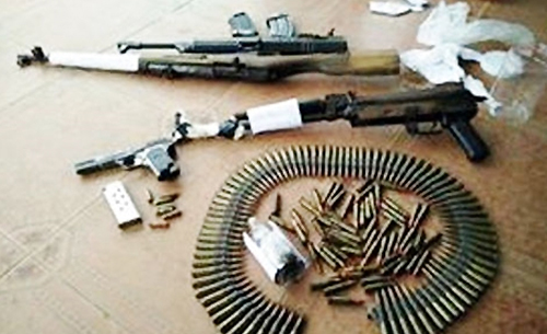 4 khẩu súng (2 AK, một CKC, một K54), một quả lựu đạn, 3 băng tiếp đạn cùng hàng trăm viên đạn vừa được Trương Ghi Ta, người có "tiền án nhiều hơn tiền mặt", mang đến công an giao ...